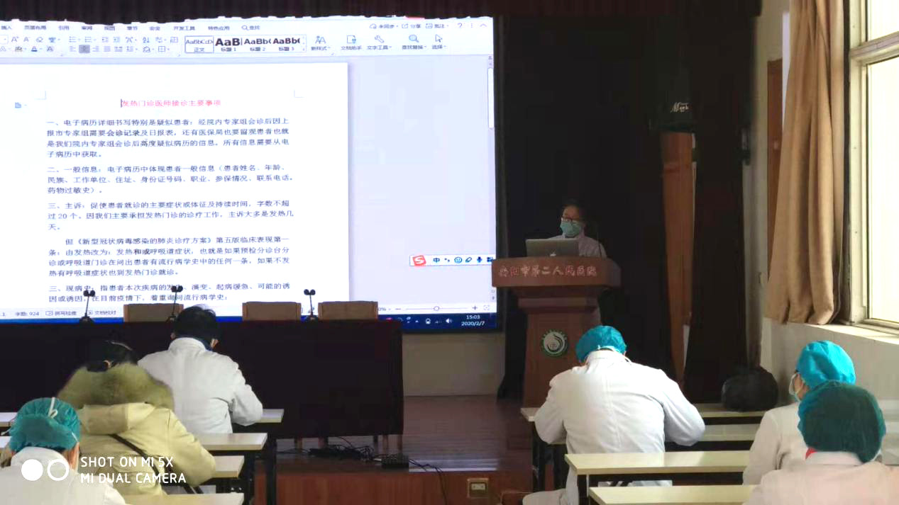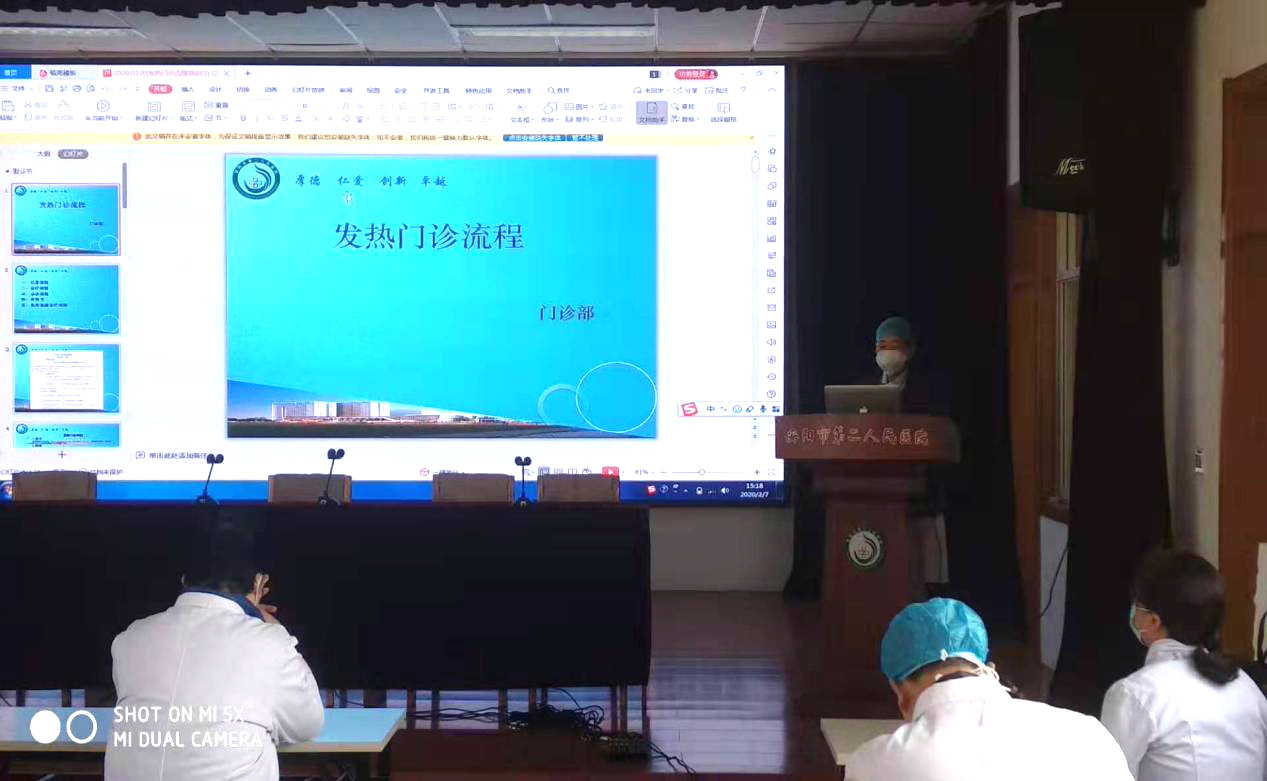 為抗擊新冠肺炎疫情,保障廣大人民群眾生命安全,2月7日下午3點(diǎn),我院醫務(wù)科、護理部、門(mén)診部、感控辦組織了第二批發(fā)熱門(mén)診輪崗醫務(wù)人員培訓。會(huì )議由醫務(wù)科睢德道科長(cháng)主持。