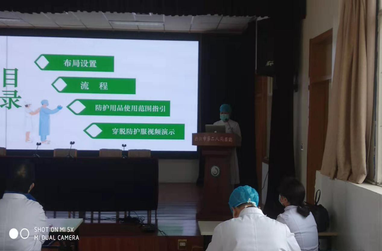 劉曉俊主任就我院發(fā)熱門(mén)診的布局,防護用品的使用原則、防范措施和流程進(jìn)行了專(zhuān)業(yè)講解。